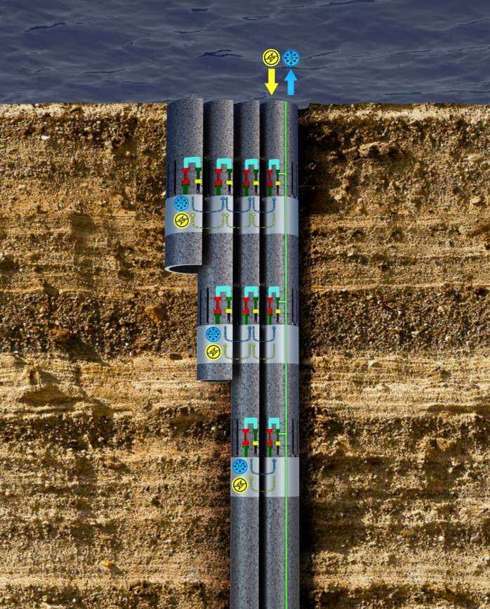 The resulting data capture and retrieval system works on any size pipe, and it has no positioning restrictions related to well depth or annulus. During the well’s installation phase, the system is powered by its own battery. Once installed, continuous power is generated by the Intelligent Pipe system installed on the tubing, which is connected to the surface via an electrical downhole cable. This cable ensures the power supply of the tubing system as well as the data retrieval for all Intelligent Pipe systems deployed in the well. Non-magnetic pipes connect the Intelligent Pipe casing system to its tubing system, enabling transmission of both power and data. Using a tubular encapsulated cable (TEC), sensor monitoring can literally take place every second, with no limit on how many times monitoring is carried out.